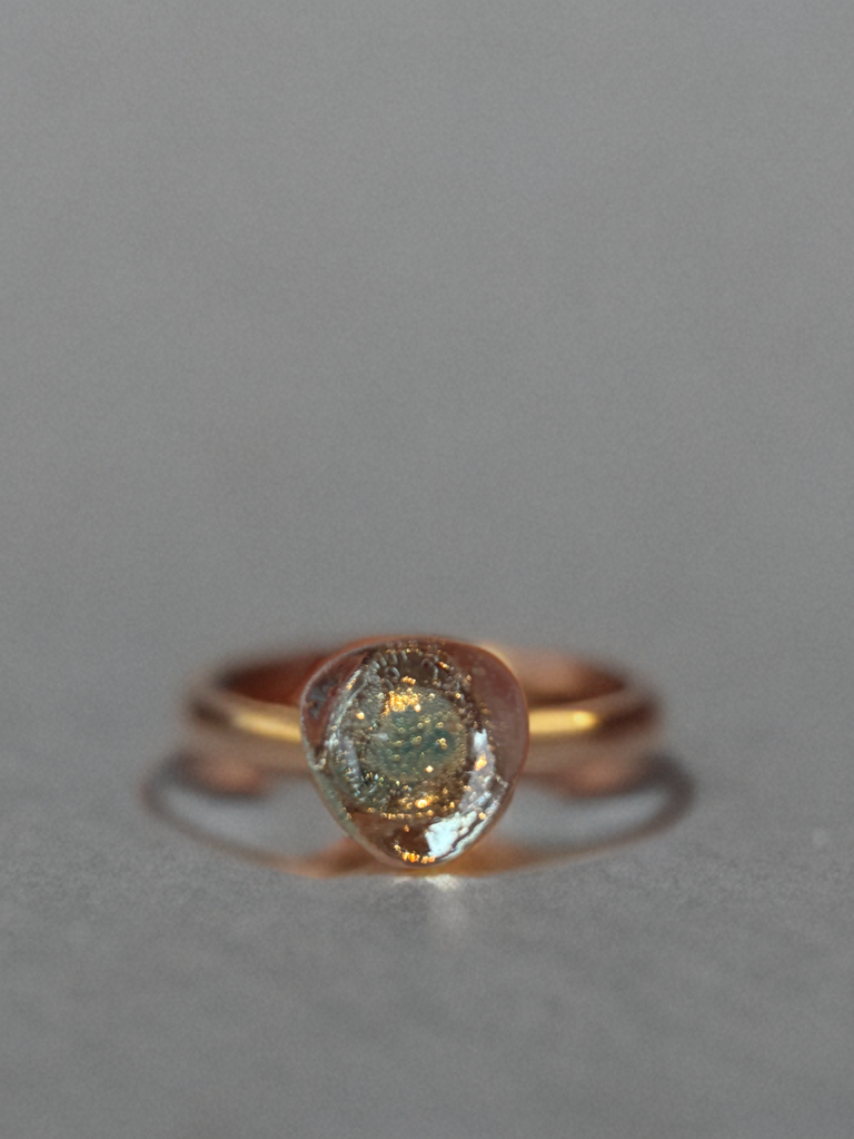 Zilverkleurige verstelbare ring met bubble effect in glas
