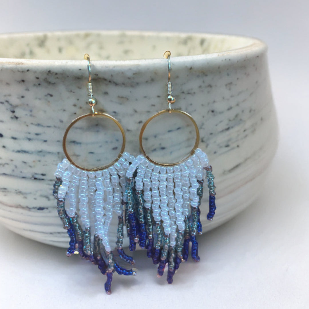 Goudkleurige hypoallergene oorhangers met Miyuki kralen.