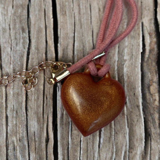Lederen ketting met klein goudkleurig hartje uit resin