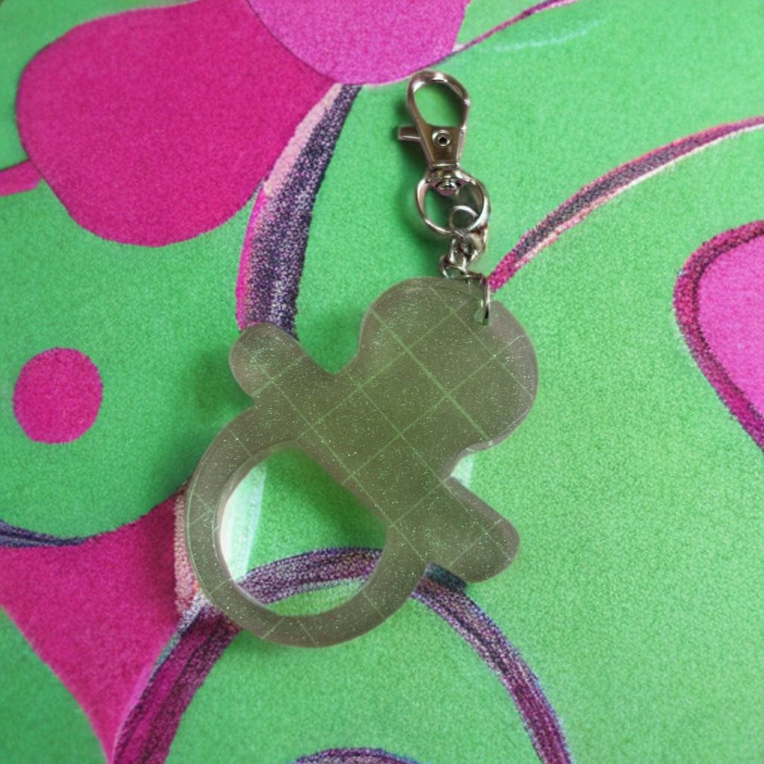 Sleutelhanger uit resin, beschikbaar in verschillende kleuren op bestelling.