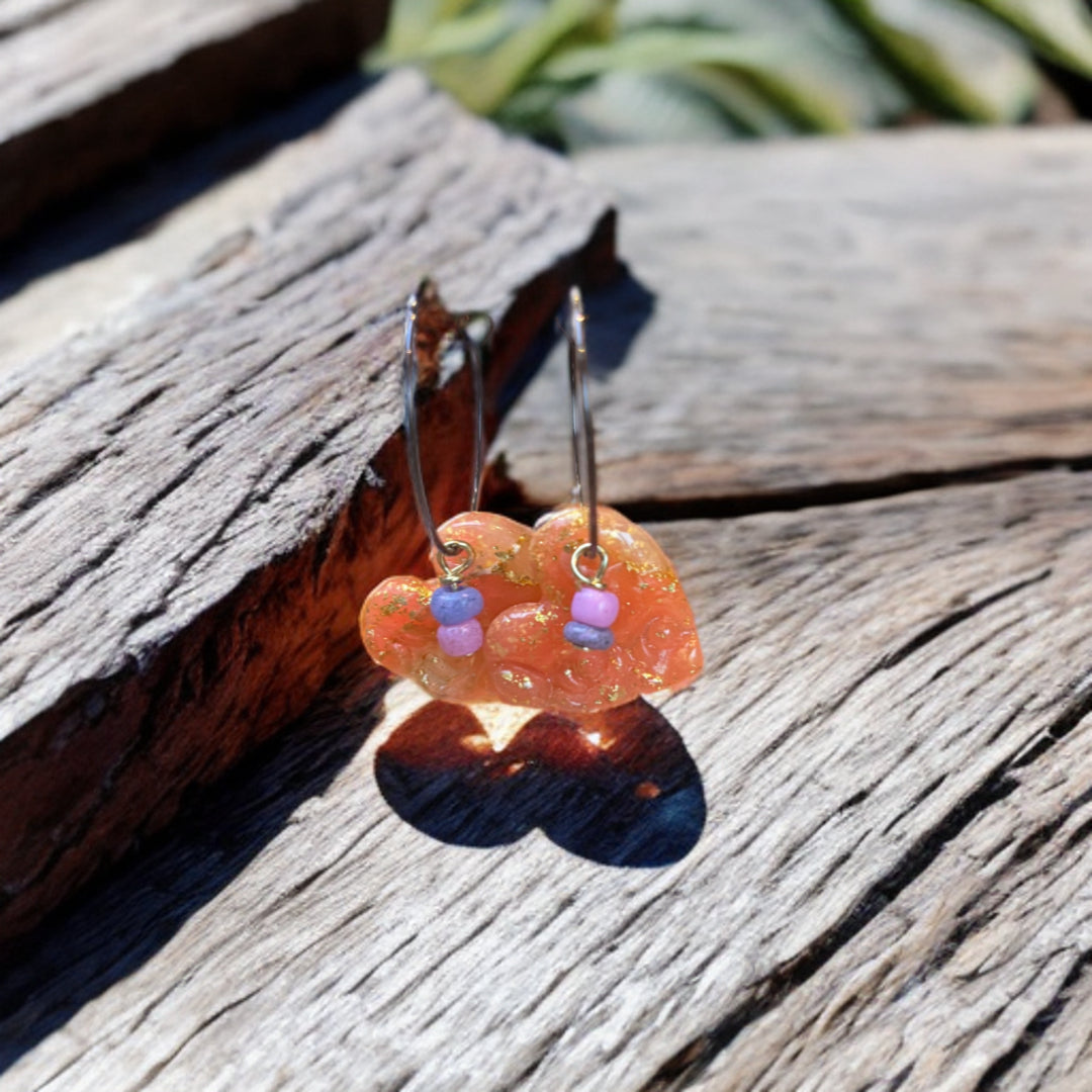 Chocoladegoudkleurige oorhangers met hartjes uit polymeerklei