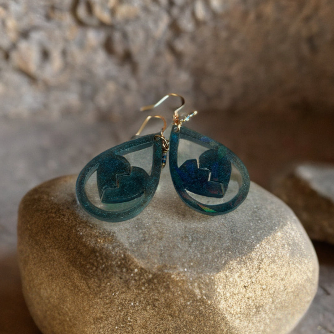 Hypoallergene oorhangers met gebroken hartjes uit resin.